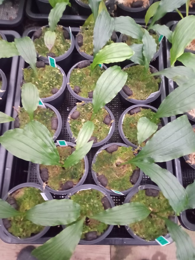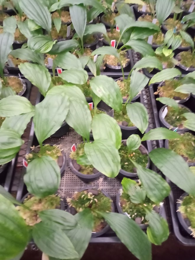 一本植えにして、開花するまでそのままの状態を維持する予定でしたが、交配によっては大きくなり過ぎて混み合い、3.5号鉢では無理な状況の鉢も出てきているので、今年の春は、鉢間を開けたり、未開花の株でも植え替える必要が出て来ています。作業時間を取られるのと、一番大きな問題は、置くスペースの問題です。今でも、ギリギリ収まっている状況なのに、これ以上置くスペースはありません。昨日の14コ⇒12コの作業をしただけで、育苗箱2つ分のスペースが必要になってしまいました。通路に仮置きしていますが、現在、通路には10箱位が仮置きの状態で、これ以上作業が進められない状況に陥っています。早く花が咲いて、駄花は淘汰しないと栽培場が機能不全になって、他の優花まで悪い影響が出てしまいます。昨年は、二百鉢程度を山に植えましたが、1年もしないうちに元の状態に戻ってしまいました。今シーズンは何としても道の駅に出荷して数を減らさなくては完全にパンクしてしまいます。