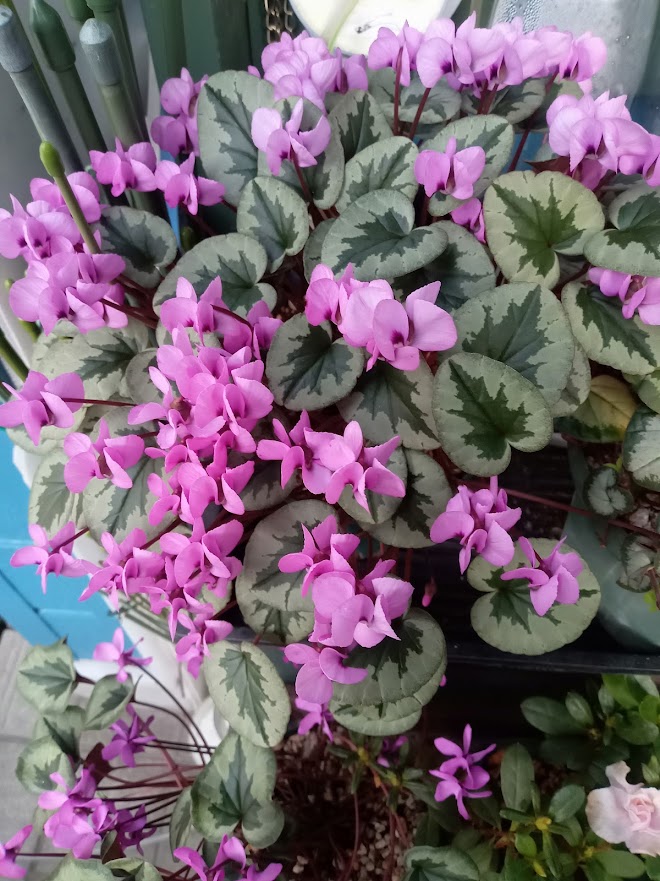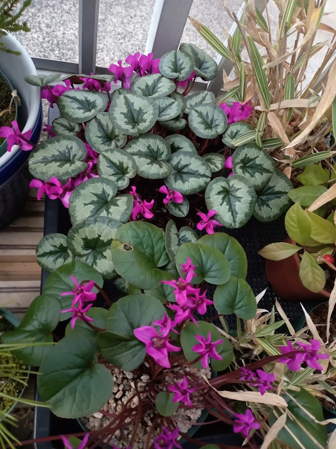 今日は、ひな祭りです。この時期に花盛りになるのは、シクラメン・コウムです。ひな祭りにピッタリなピンクや紅色の花が可愛いです。