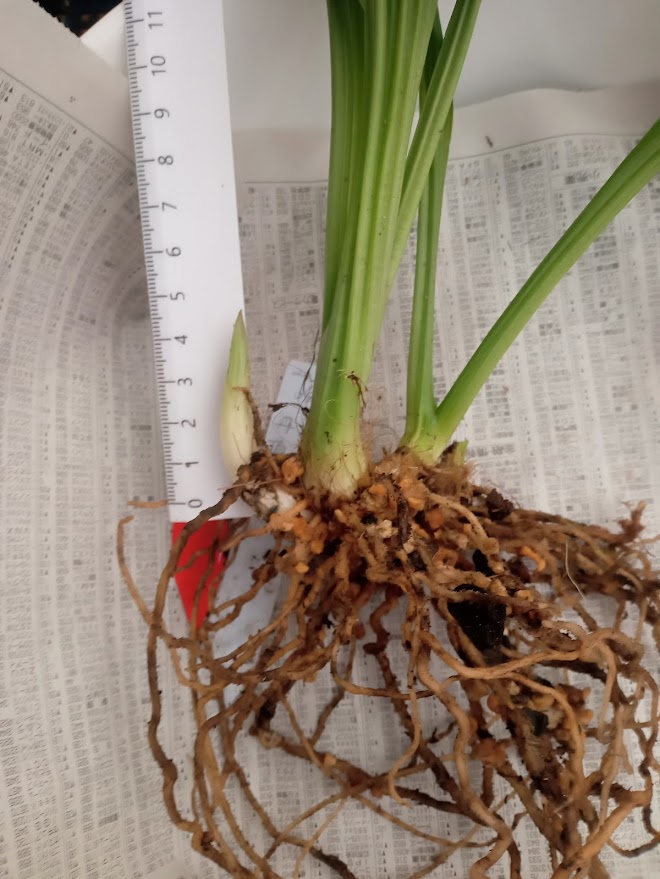 昨日は10月と言うのに、蘭舎は最高気温が31℃ありました。植替え中のエビネの冬至芽は種類によって大きさはまちまちで、出来が良いのか悪いのかよくわかりませんが、ニオイ系は暑さの影響で根が結構傷んでおり、確実に悪い状況です。