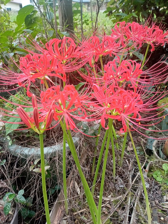実家のプランターで数年前に植えた彼岸花がやっと咲いていました。